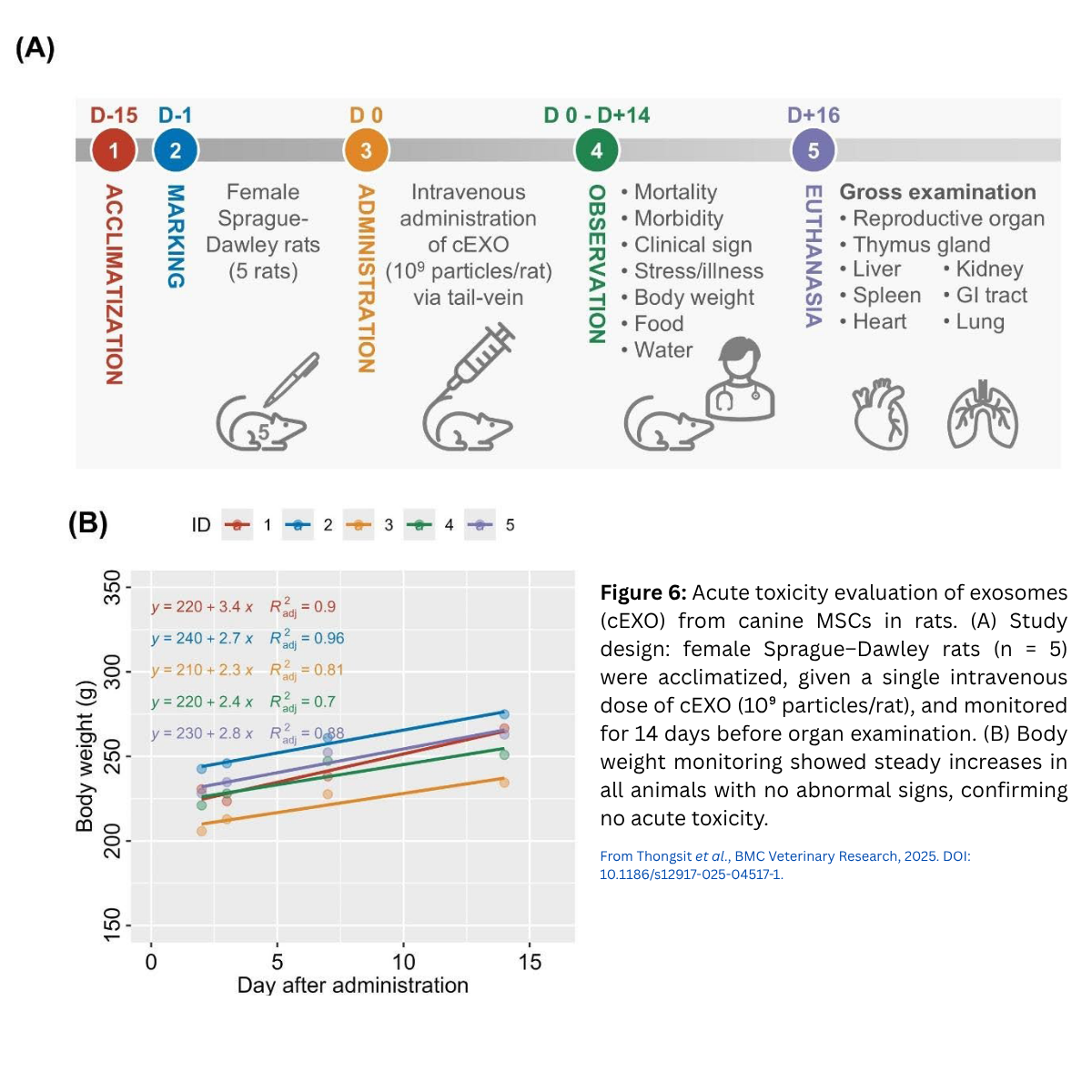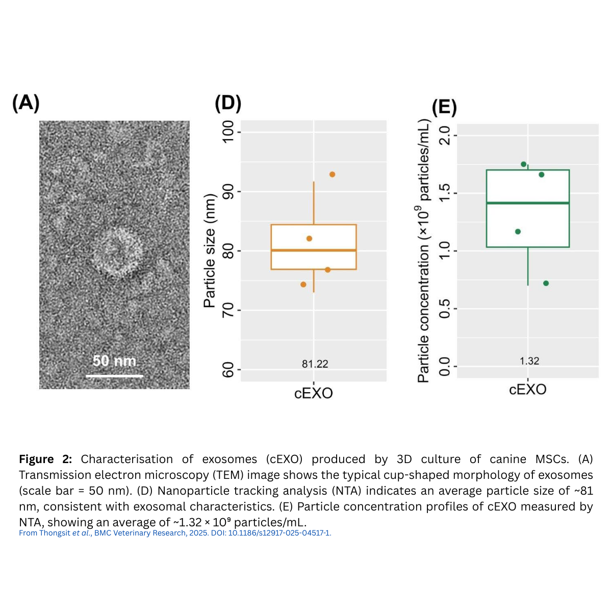 Title: Scalable production of anti-inflammatory exosomes from three-dimensional cultures of canine adipose-derived mesenchymal stem cells: production, stability, bioactivity, and safety assessment (BMC Veterinary Research, 2025) by Anatcha Thongsit, Saranyou Oontawee, Parkpoom Siriarchavatana, Watchareewan Rodprasert, Poorichaya Somparn, Daneeya Na Nan, Thanaphum Osathanon, Hiroshi Egusa, and Chenphop Sawangmake.
