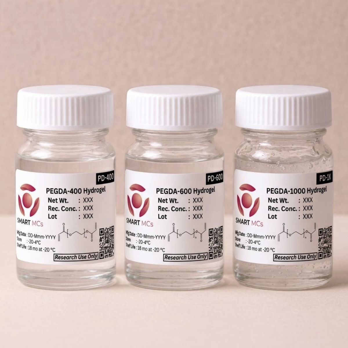 A balanced option with moderate flexibility and swelling. Suitable for general hydrogel systems, cell encapsulation, and soft tissue models. - PEGDA-1000 (high molecular weight)